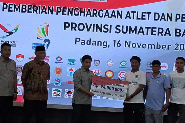 Covesia.co.id – Setelah penantian panjang, janji Pemerintah Provinsi Sumatera Barat (Sumbar) untuk mengapresiasi atlet dan pelatih berprestasi akhirnya direalisasikan. Gubernur Sumbar, Mahyeldi Ansharullah, menyerahkan total bonus sebesar Rp9,015 miliar dalam sebuah acara di Auditorium Gubernuran pada Minggu malam (16/11/2025). Pemberian bonus ini menjadi napas lega, terutama bagi klub kebanggaan Kota Pariaman, Persatuan Sepakbola Kota Pariaman…